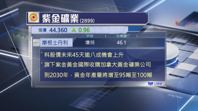 【Now財經台】摩根士丹利預期,紫金礦業(02899)股價於未來45日,有逾80%機會上升。(02259) 【分析】 32分鐘前【中國建設銀行(亞洲) 呈獻:FINTERVIEW】Fed減息有條件嘆慢板?(下)