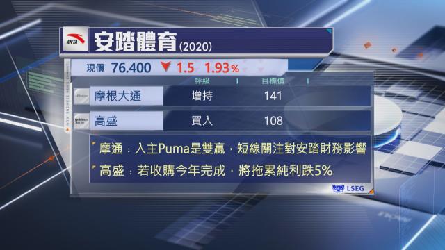 【大行報告】高盛:安踏買PUMA或令今年少賺5%