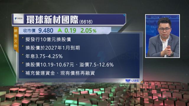 【港股今日睇】環球新材發CB 股價強勢可延續?