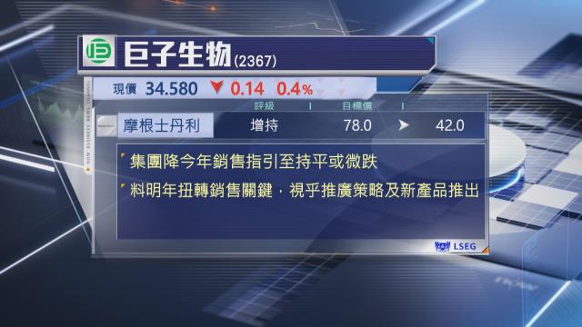 【Now財經台】摩根士丹利下調巨子生物(02367)目標價。(02367) 【分析】 16分鐘前