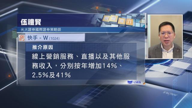 【Now財經台】光大證券國際證券策略師伍禮賢推介快手(01024)(01024) 【推介】 伍禮賢 1小時8分鐘前