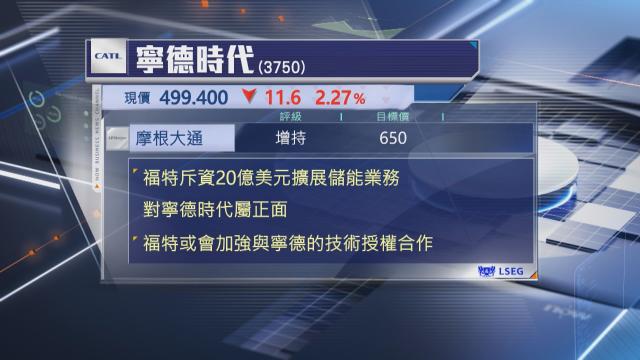 【Now財經台】摩根大通維持寧德時代(03750)是內地電池供應鏈首選。(03750) 【分析】 14分鐘前港股走勢丨恒指跌逾200點後曾倒升 25400水平爭持