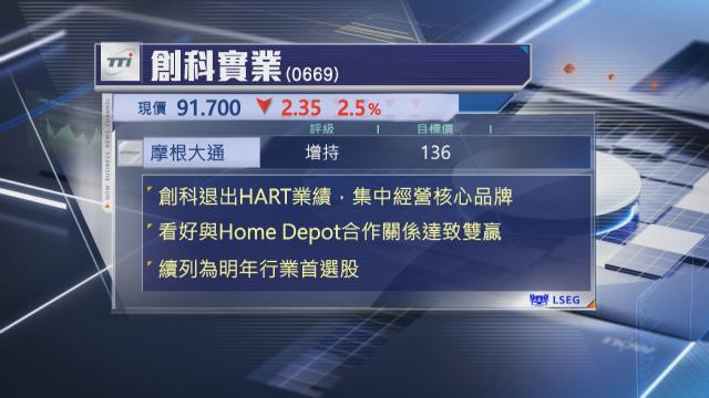 【Now財經台】摩根大通看好創科實業(00669)終止HART充電式DIY工具業務後,可進一步提升跟家得寶(Home D...(00669) 【分析】 9分鐘前【大行報告】大摩料平保明年新業務價值升23%