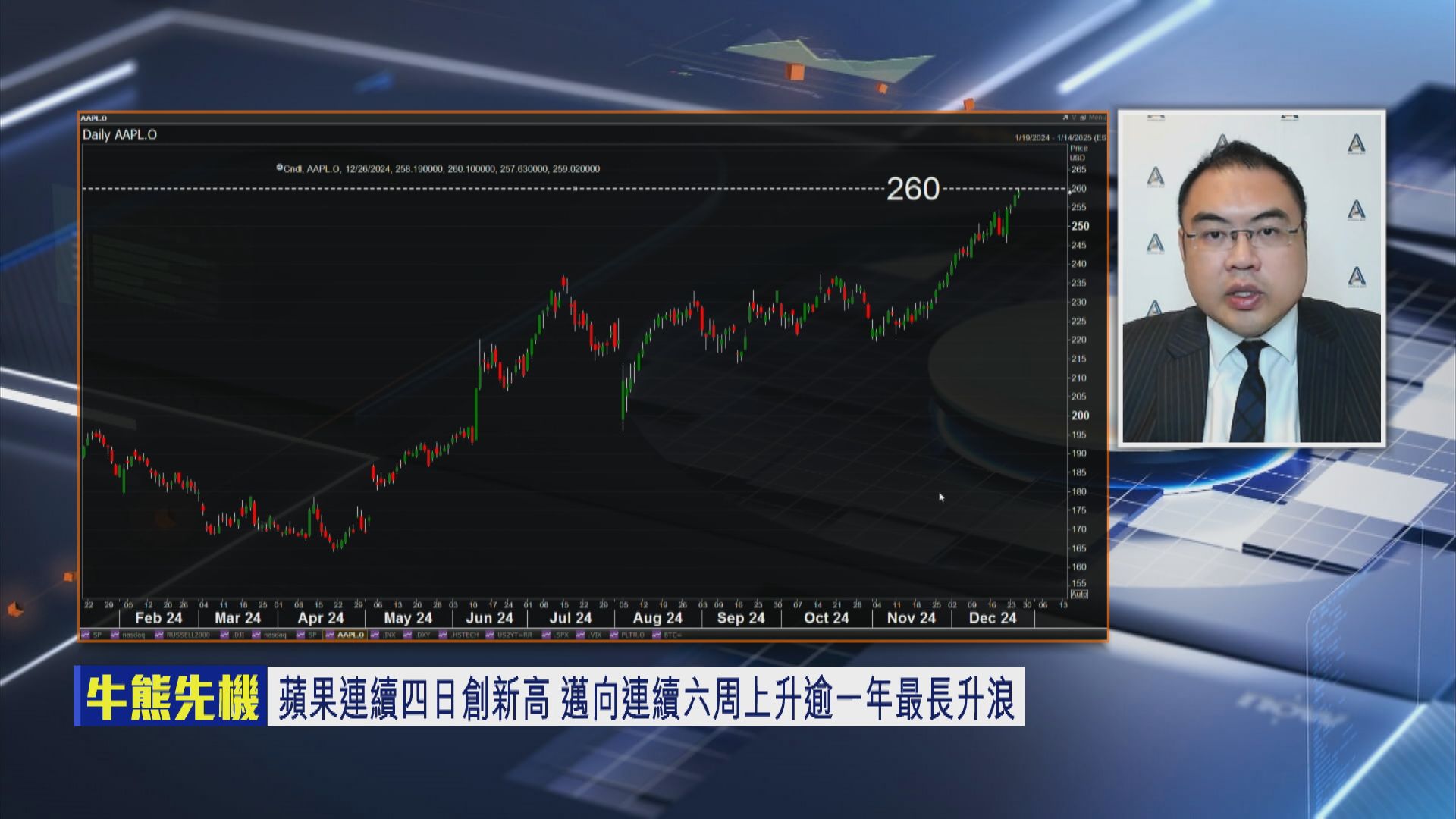 【Now財經台】美股過去一段時間一直靠重磅股撐,包括「科技7雄」(Magnificent 7)嘅Tesla及蘋果公司(Apple.Inc),後者更連續4個交易日破頂,依家最牛目標價睇325美元,但有分析指,美股表現同市寬唔配合,係咪市場低估咗人工智能(AI)推動嘅升級周期?資金會唔會繼續捧「7雄」?