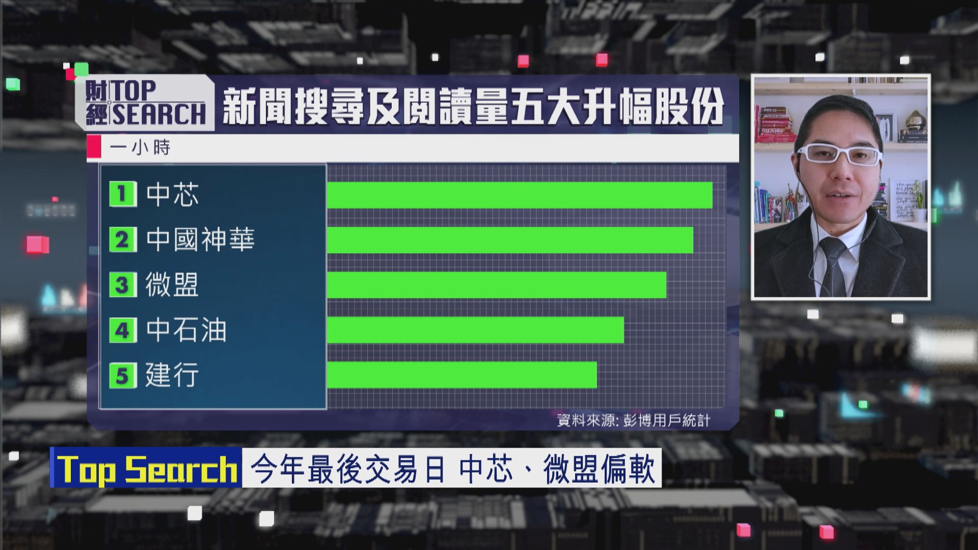 【Now財經台】截至早上11時止,過去1小時內《彭博》用戶搜尋量最多港股,依次為中芯國際(00981)、中國神華(01088)、微盟集團(02013)、中國石油股份(00857)及建設銀行(00939)。