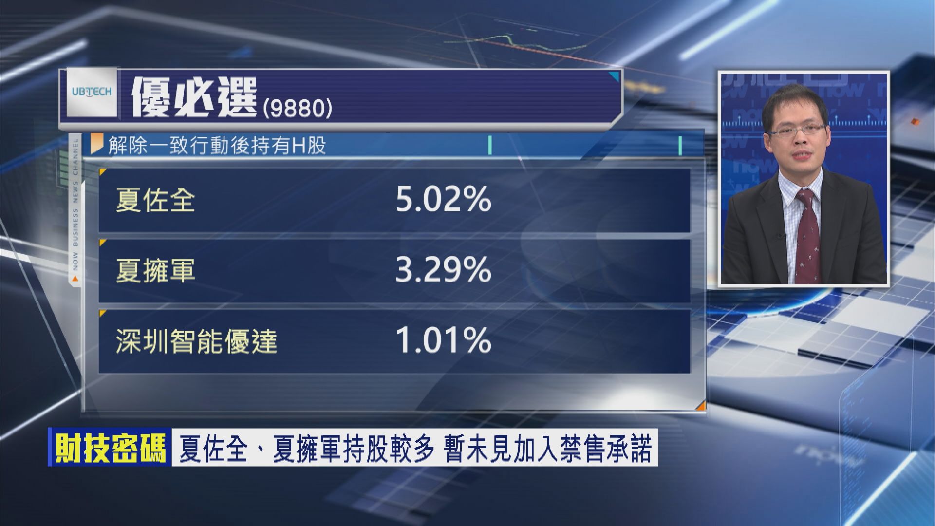 【Now財經台】優必選(09880)上周宣布主席周劍同幾名高層解除一致行動人士協議,但主席承諾延長禁售期1年,市場仍憂慮其他股東會減持,消息一出,集團股價單日急瀉逾30%,並跌足4日,累跌51%,到今日(6日)先出現反彈。依家主席以外嘅一致行動人士合共持股12%,當中3名股東承諾未來1年唔減持,但2名冇表態股東會唔會係隱憂?