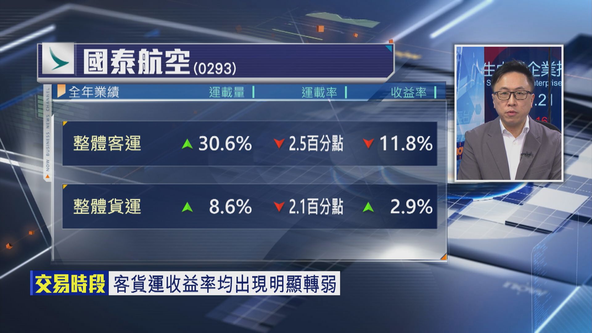 【Now財經台】國泰航空(00293)今日(12日)公布業績,去年整體貨運的運載量上升逾8%,收益率升近3%,雖然貨運收益率力保不失,但面對關稅不確定性,對貨運會造成多大影響?