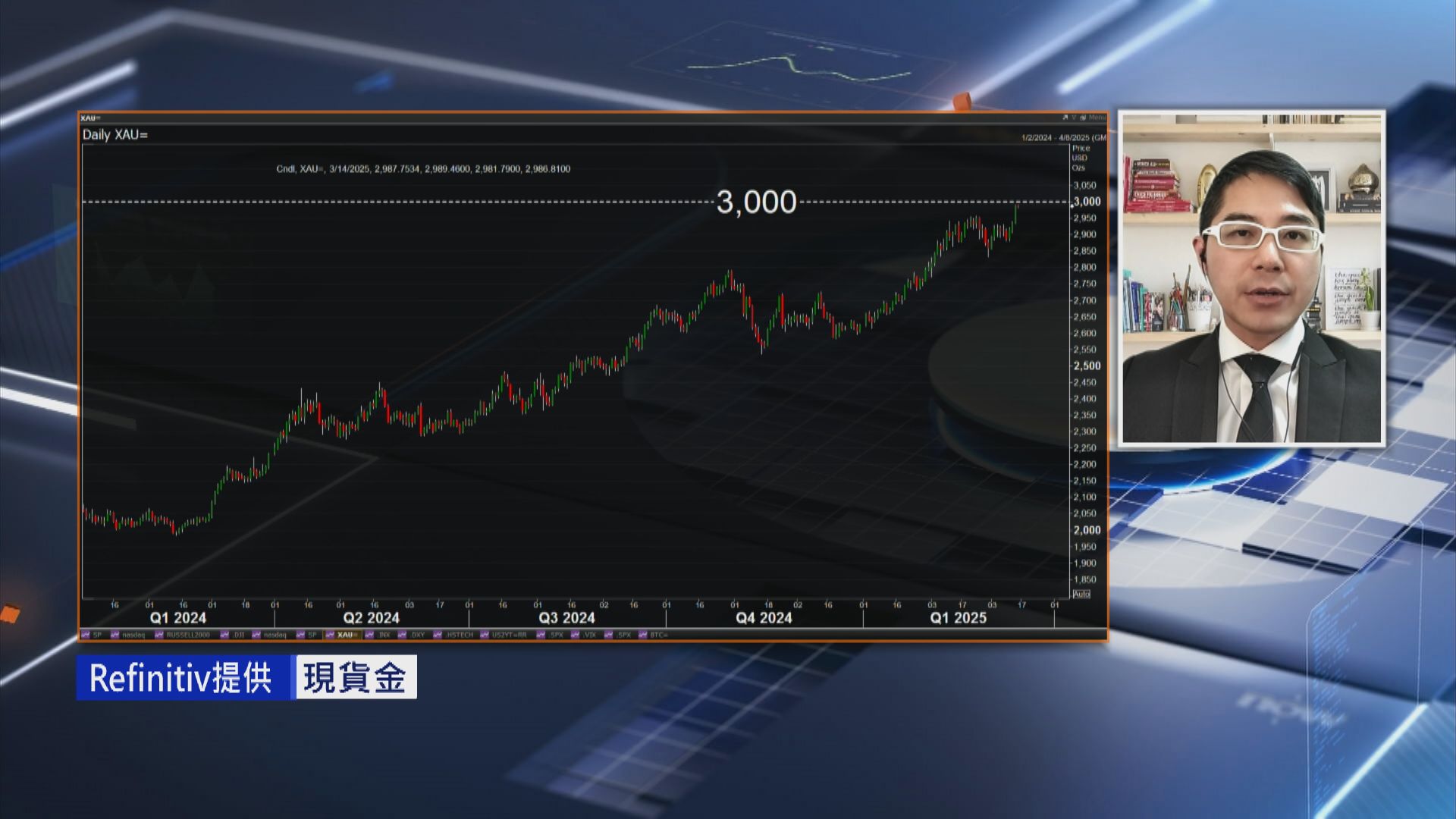金價方面,聶Sir認為,市場十分關注美國經濟放緩情況,近期美元偏軟會利好金價,估計金價未來1個星期企穩每盎司3000美元樓上嘅機會幾大,投資者可以留意今個月可唔可以升至3050美元水平,由於短期冇乜利淡因素,所以金價可以繼續睇好。