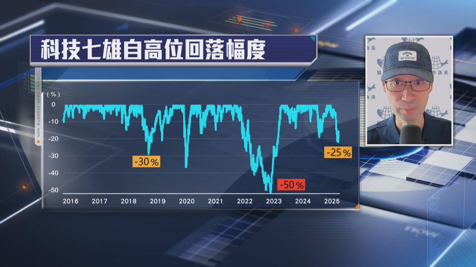 【Now財經台】「股市漁夫」創辦人莊志雄指,港股今年的升浪,是由年初DeepSeek熱潮所「點燃」;若果比對上一次港股科技指數,升勢結束後的回調幅度介乎50%至62%計算,今次回調幅度最深只約38%,即是說,不排除科指仍有下調空間。