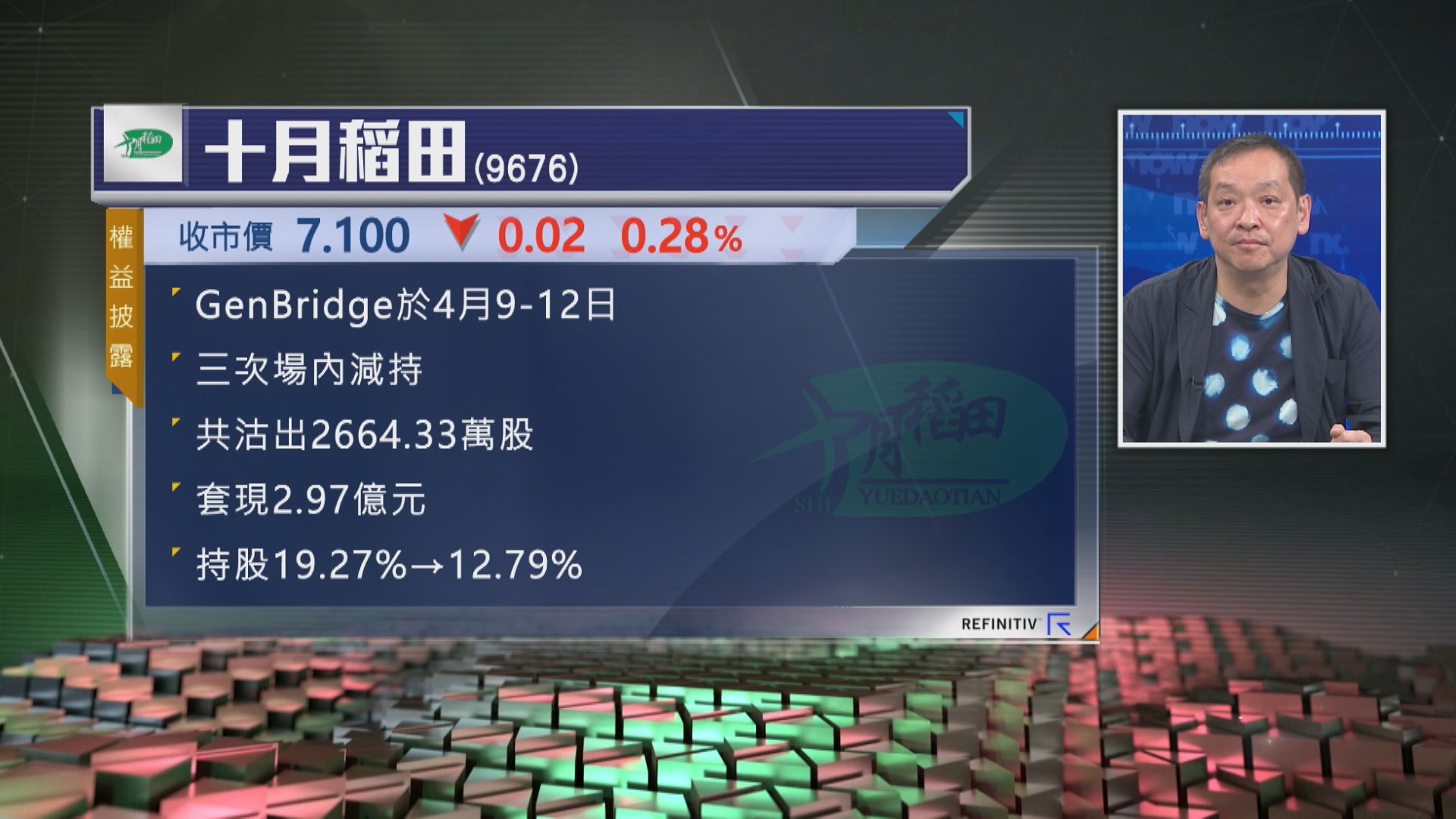 【Now財經台】十月稻田(09676)遭基金股東GenBridge近日三度減持,套現近3億元。