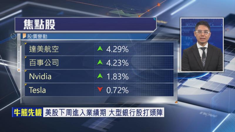 博威環球證券金融首席分析師聶振邦指,美國經濟數據如國內生產總值(GDP)等已逐步靠穩,佢相信,銀行業績好大機會符合市場預期,所以美股未必會有太大下行壓力。