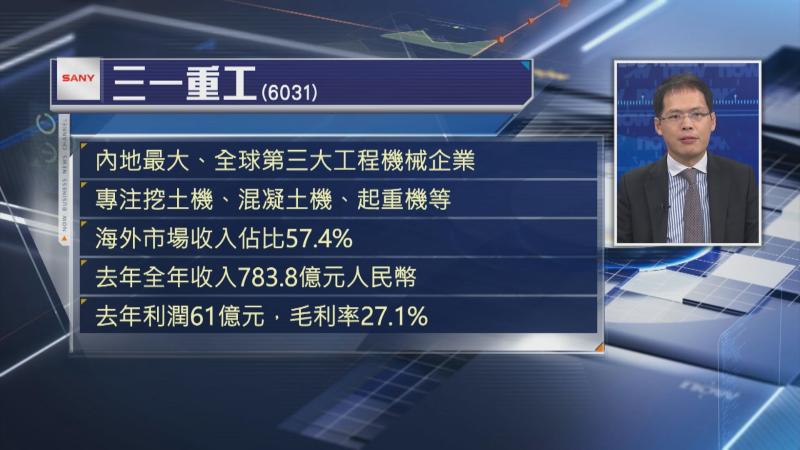 至於今日撞期招股嘅4隻股份中,Mike較睇好三一重工,雖然集團A+H股上市,估計股價短期內升極有限,但由於公司基本面靚,係內地最大工程機械製造廠,又獲多個海外明星級基石投資者力撐,盈利表現理想,因此,認為三一重工可以睇高一線。