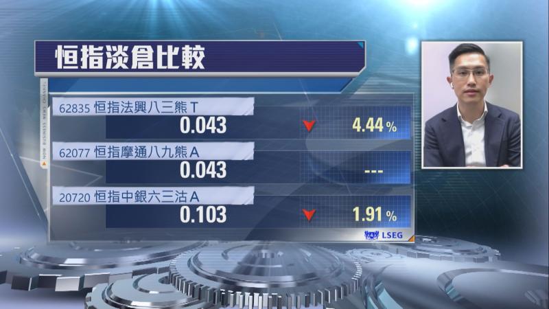 胤源世創家族辦公室(香港)第一副總裁黃偉豪指,最近大市以上落格局為主,沒有明顯方向。若投資者想博大市反彈,收回價不建議選太貼,可以考慮收回價25100點的牛證,雖然與現價有1000點距離,但比較適合過夜部署。而25100點以下的收回價,可以減少收回風險,槓桿亦不低。
