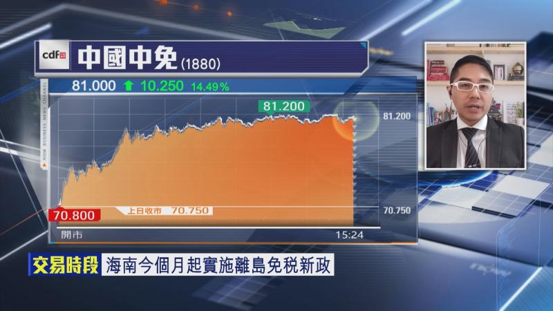 高歌證券金融首席分析師聶振邦指,消息對股價有刺激作用,若海南免稅新政的成效顯著,不排除未來免稅安排會擴大至其他地區執行,有利中國中免下季業績憧憬,但要留意股價受消息刺激升得相當急,公司基本面未能跟上股價,股價企穩高位的動力不足,似乎已經「炒過龍」。
