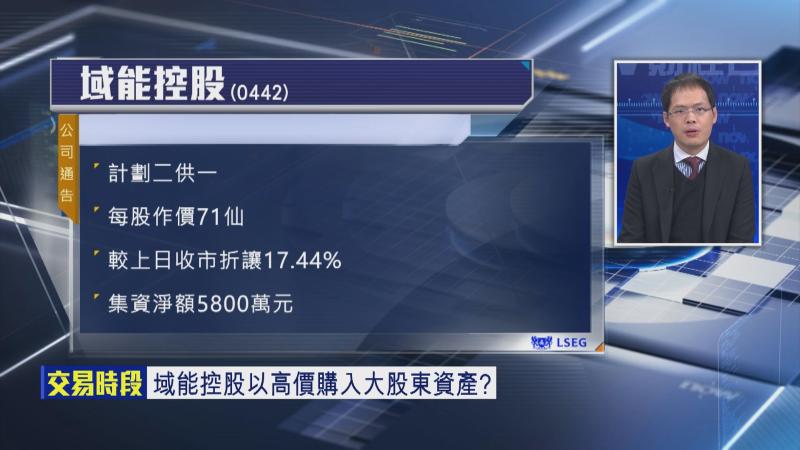 【Now財經台】域能控股(00442)股價今日(13日)一度飆62%,高見1.4元,公司有2單消息,首先行計劃「2供1」,供股價71仙,較昨日(13日)收市價折讓17%,集資6100萬元。另一個消息係公司向控股股東兼主席蘇樹輝,收購虛擬資產交易所VAX約5.56%股本,代價1億元。