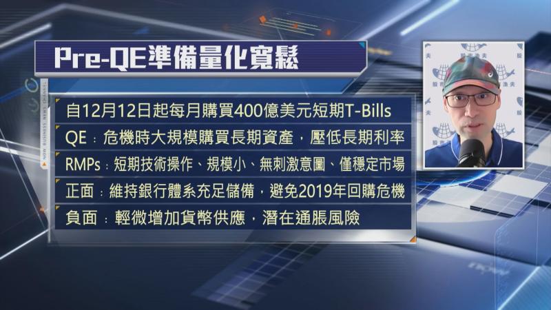 【Now財經台】美國聯儲局今日(12日)起,每月購買400億美元短期債T-bills(1年內到期零息債券),紓緩短期流動性問題,理論上唔算量化寬鬆(QE),但道指昨晚(11日)破頂,資產市場反應唔算差,點睇買T-bills呢個動作?係咪QE前奏?