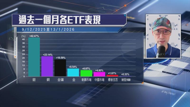 「股市漁夫」創辦人莊志雄指,今年開局延續了2025年的情況,去年趨勢先是黃金相關股造好,隨後是銀價、銅價等追上,下半年更是變成基本金屬強勢,現在也是如此,自從美國聯邦公開市場委員會(FOMC)會議於2025年12月9日召開後,至今仍然是金屬類跑贏,銀價升逾42%,銅礦股交易所買賣基金(ETF)升逾22%,金礦股ETF升逾18%,銀及銅的表現甚至跑贏金。