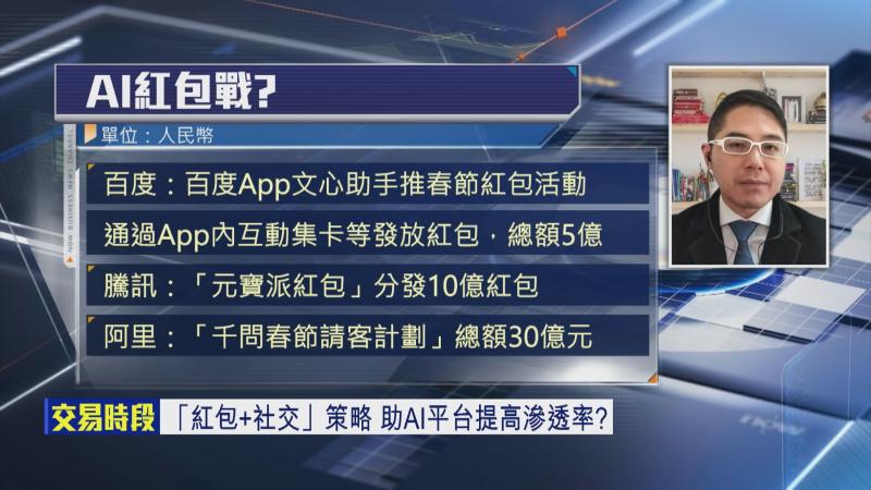 【Now財經台】仲有約兩星期就到馬年,內地各大平台嘅「紅包大戰」已經開打,百度集團(09888)早前已宣布推出5億人仔紅包計劃,騰訊控股(00700)旗下人工智能(AI)平台「元寶」更準備10億人仔現金紅包,阿里巴巴(09988)嘅「千問App」更豪掟30億人仔,大搞「新春請客計劃」,喺AI熱潮下,今年嘅特色係「AI+社交」,到底邊隻股份會成為「紅包大戰」大贏家?