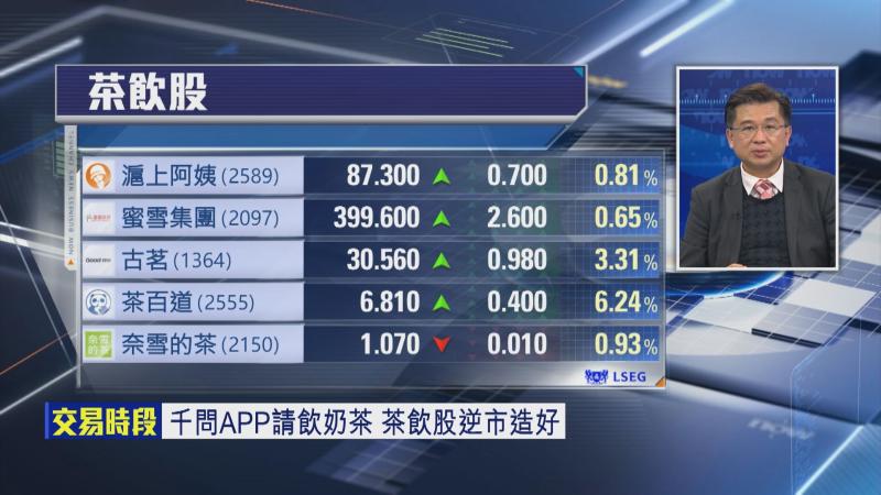 【Now財經台】農曆新年好快就到,阿里巴巴(09988)旗下千問App「春節30億大免單」活動今日(6日)正式上線,首輪活動送奶茶,包括內地各大主要茶飲品牌,古茗(01364)、奈雪的茶(2150)等,千問App短短3個鐘內落單量已逾100萬,農曆新年快到,加上有平台活動助攻,茶飲股今轉可唔可以炒耐啲?