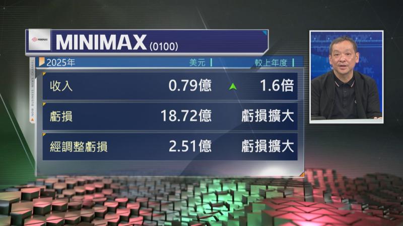 【Now財經台】半新股MINIMAX((00100)去年收入升1.6倍,經調整虧損就擴大至2.5億美元。
