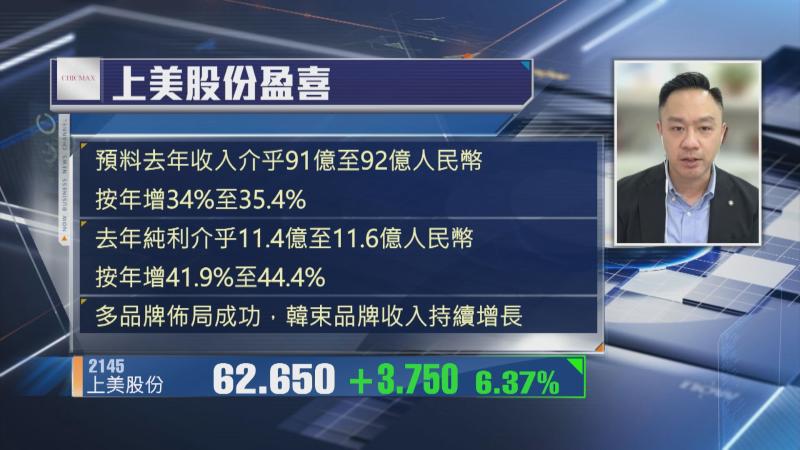 【Now財經台】主攻護膚品業務嘅上美股份(02145)早前發盈喜,預期去年最多賺逾44%至11.6億人仔,值得留意係,集團去年上半年賺5.2億人仔,即係下半年表現好過上半年。不過,上美現價去年高位累跌近40%,喺業績理想下,點解讀股價表現?
