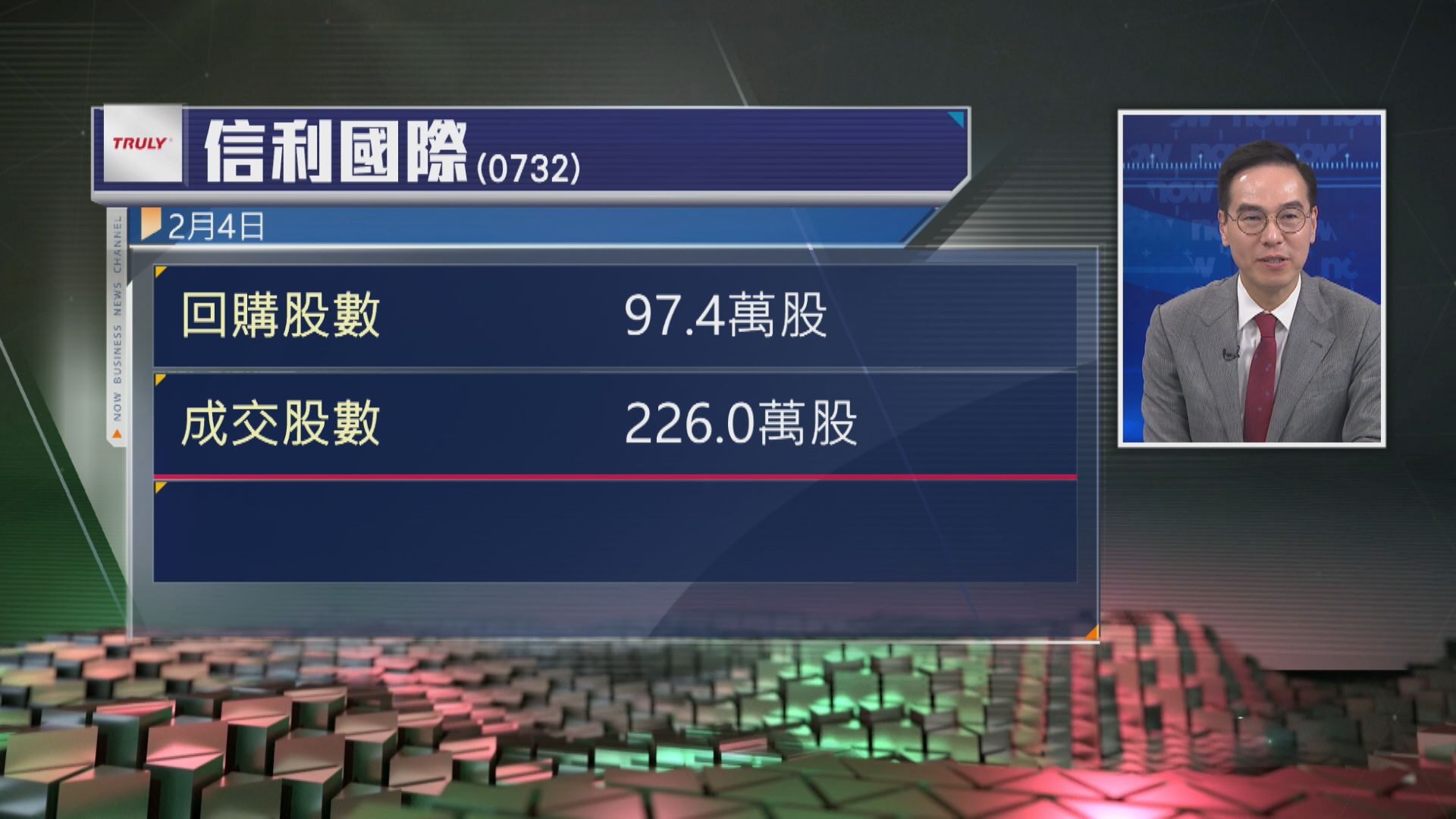 【Now財經台】信利國際(00732)回購97.4萬股,涉資約115萬元。