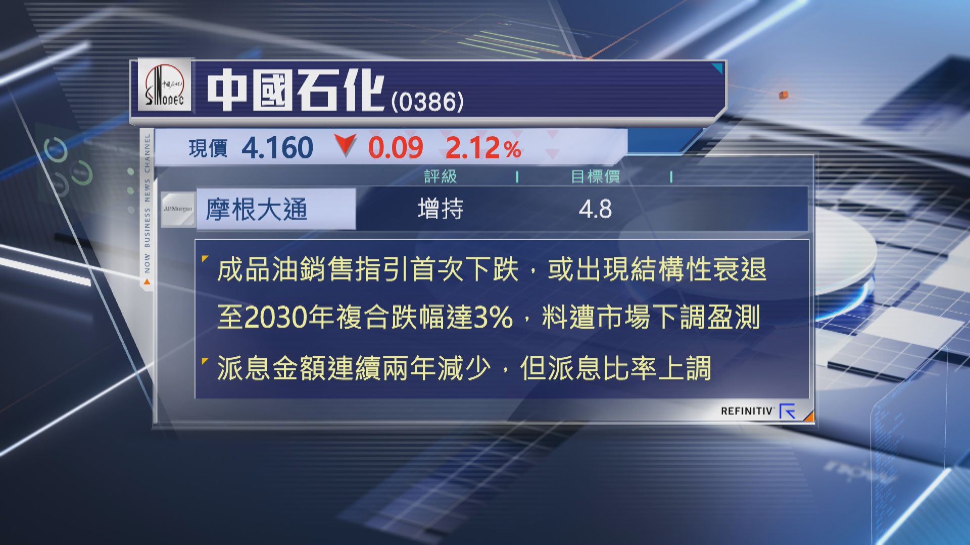 【Now財經台】摩根大通預期,中國石油化工股份(00386)業績後將被市場下調今年盈利預測。