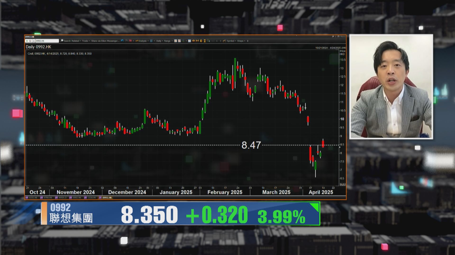 富昌證券聯席董事譚朗蔚指,關稅嘅正負面消息看似可以帶動股價上落,但其實關稅問題短期內唔會向好,美國未曾放鬆,中方亦態度強硬,因此消息暫時只會係負面,即使聯想今日股價一度上到8.84元高位,亦唔代表真正脫險,技術上約8.8元係重要位置,以現時情況睇,股價好難喺呢個位企得穩。