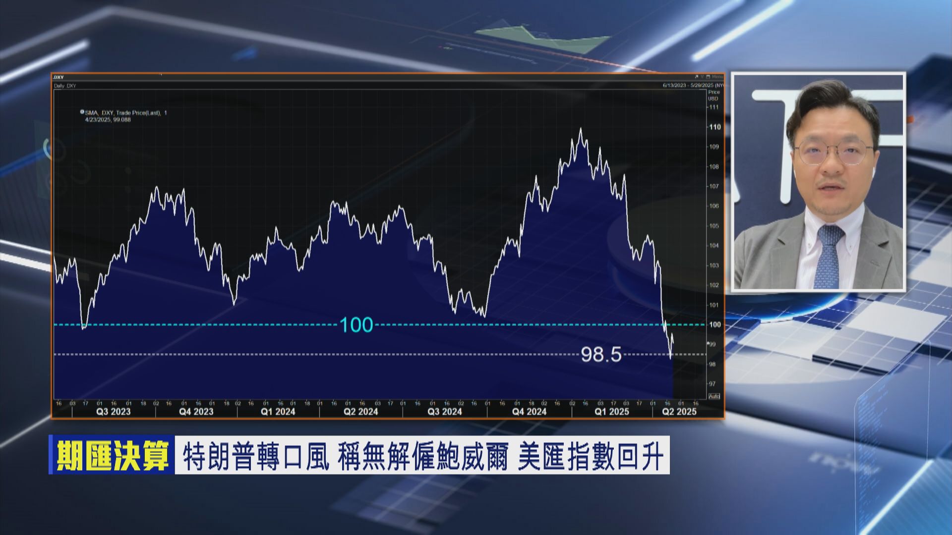 【Now財經台】美國總統特朗普(Donald Trump)昨晚(22日)又改口,話無意炒聯儲局主席鮑威爾(Jerome Powell),並指會下調對華關稅。美匯指數最新上返99水平,算唔算暫時脫離危險期?