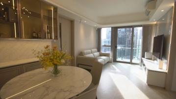 【Now財經台】全屋以米白色和灰色為主調,配搭大量木質傢俬,並加入鋼框點綴,營造時尚輕奢風格。