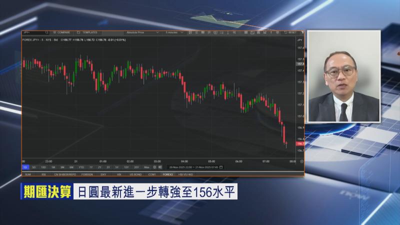 【Now財經台】日圓今日(21日)有唔少消息,日本財務大臣片山皋月今早(21日)預告,唔排除出手干預匯市,日圓一度轉強,其後日本首相高市早苗嘅內閣通過逾萬億元刺激經濟方案,又指一旦額外稅收不足,將會考慮加大發債力度,日圓再度轉弱,於157至156水平徘徊,點睇日圓後市?