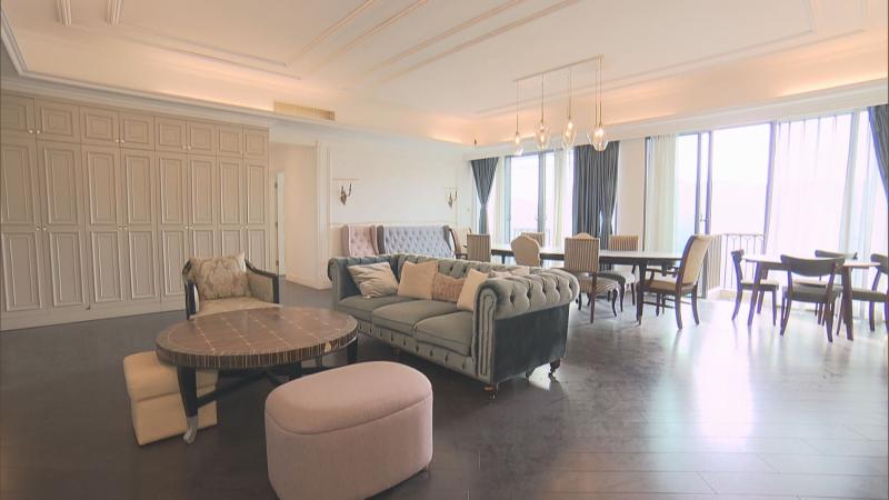 【Now財經台】荃灣半山呎價相對低水,吸引不少長線投資者,朗逸峰一個相連單位實用面積2078平方呎,5房雙套房間隔,叫價2580萬元。