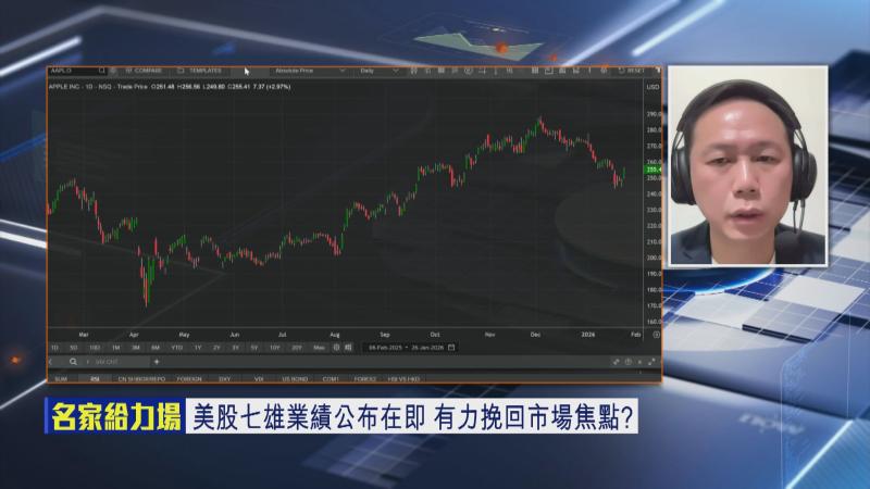 【Now財經台】今個星期市場焦點,除咗美國聯儲局議息結果出爐外,「科技7雄」(Magnificent 7)嘅蘋果公司(Apple Inc.)、微軟(Microsoft)、Meta等亦會派季度成績表,近期「7雄」股價弱勢,即將派發嘅成績表可唔可以撐返起股價?