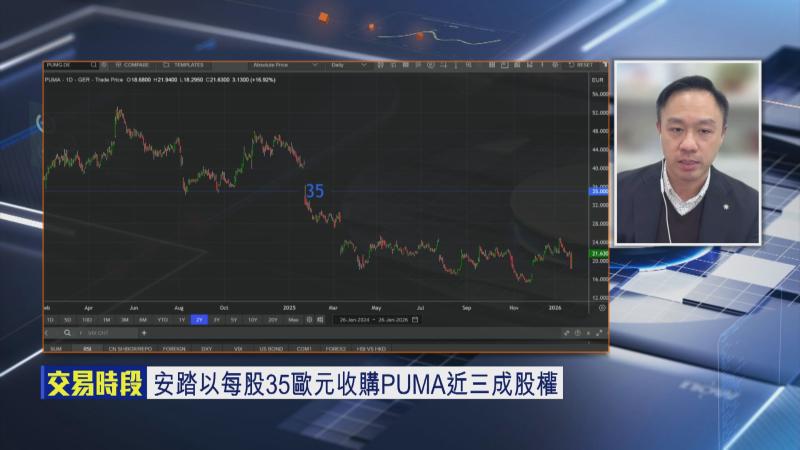 【Now財經台】安踏體育(02020)喺港股今日(27日)開市前宣布,斥資15億歐元,折合122億人仔,收購PUMA近30%股權,交易完成後,將成為PUMA大股東,安踏股價早段一度升3%,似乎反映市場對呢單Deal反應正面,值得留意係,安踏過去曾成功令FILA喺內地起死回生,更變成現金牛,今次PUMA可唔可複製呢個奇蹟?