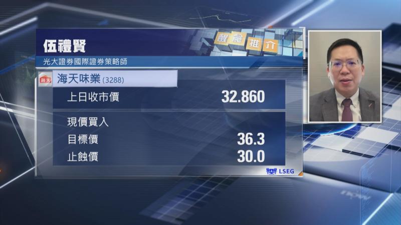 【Now財經台】光大證券國際證券策略師伍禮賢推介海天味業(03288)
