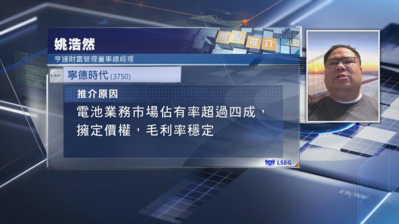 【Now財經台】亨達財富管理董事總經理姚浩然推介寧德時代(03750)