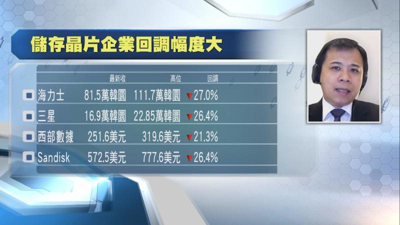 【Now財經台】2月底中東戰事爆發初期,儲存記憶體晶片相關股被視為抗跌力最強之選,不過,近日SK海力士(SK Hynix)、三星電子(Samsung Electronics)、西部數據(Western Digital)及SanDisk股價大幅回調,現時4隻股份嘅估值仍算吸引,市盈率(PE)唔算高,SK海力士、三星市帳率(PB)分別為4.7倍及2.3倍,甚至可以話平,加上券商最新畀嘅目標價都算高,市場係咪可以趁機執定平貨?
