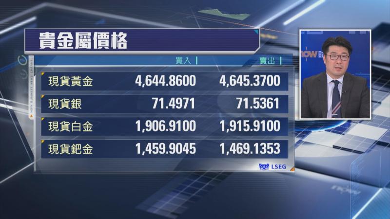 【Now財經台】金價由之前每盎司約4800美元,落到現時4600美元水平,其實2月底3月初戰事開打時,金價已經急挫,美國總統特朗普(Donald Trump)最新話,未來2至3周將會向伊朗發動猛烈攻擊,係咪意味金價又要捱沽?