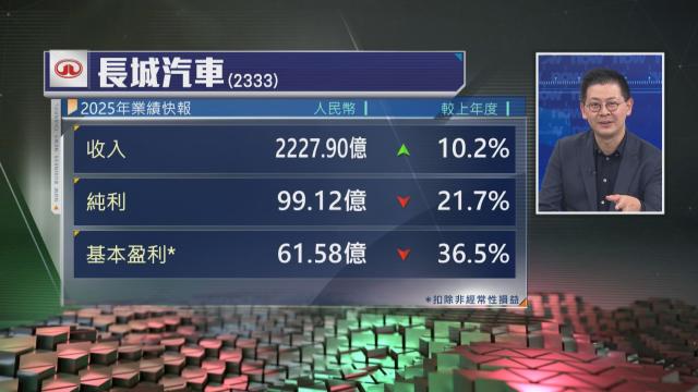 【Now財經台】長城汽車(02333)去年少賺22%,差過預期。