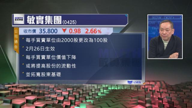 【Now財經台】敏實集團(00425)將每手買賣單位由2000股降至100股,認為可提高股份流動性,並拓寬股東基礎。