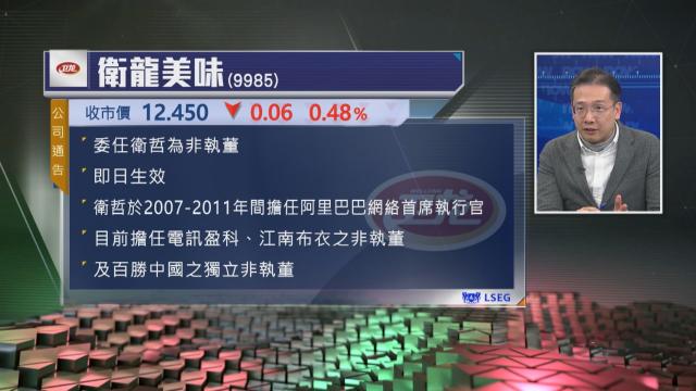 【Now財經台】衛龍美味(09985)委任衛哲為非執董,即日生效。