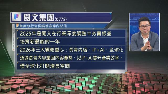 【Now財經台】閱文集團(00772)制定2026年三大戰略重點,包括長青內容、IP+AI、全球化。