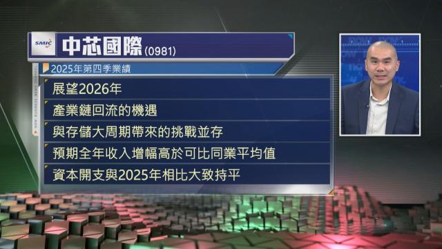 【Now財經台】中芯國際(00981)去年第四季多賺60.7%,認為今年產業鏈回流機遇與存儲大周期帶來的挑戰並存。