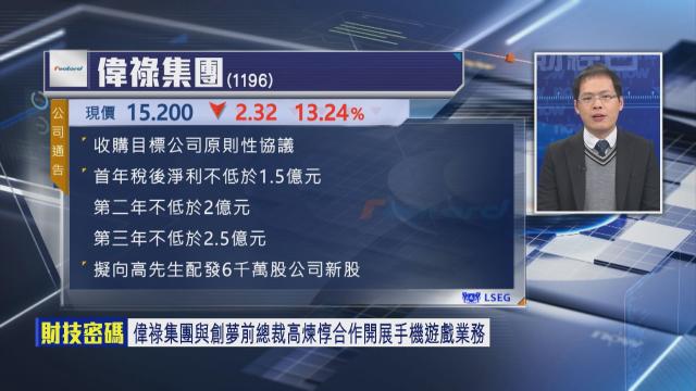 【Now財經台】偉祿集團(01196)計劃喺內地搞手機遊戲發行及營運業務,同埋跟創夢天地(01119)前總裁高煉惇建立戰...