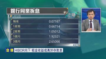 【Now財經台】近日銀行同業拆息(HIBOR)全線下跌,其中,跟樓按相關嘅1個月拆息,最新跌至1.923厘水平,隔夜拆息...