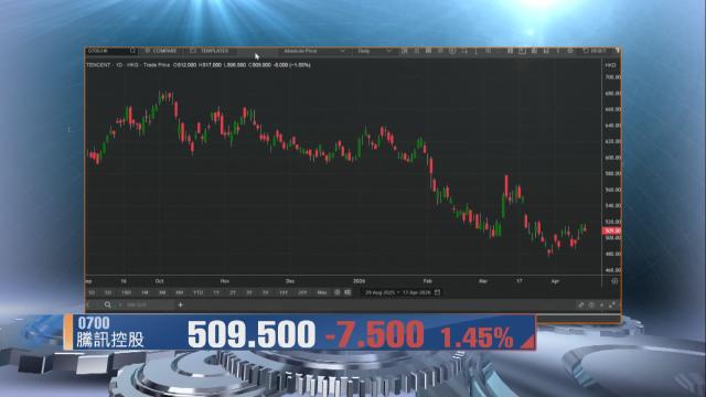 【Now財經台】騰訊控股(00700)股價連升3日後,今朝(17日)跟隨大市向下,一度低見506元,跌2.1%,投資者可...