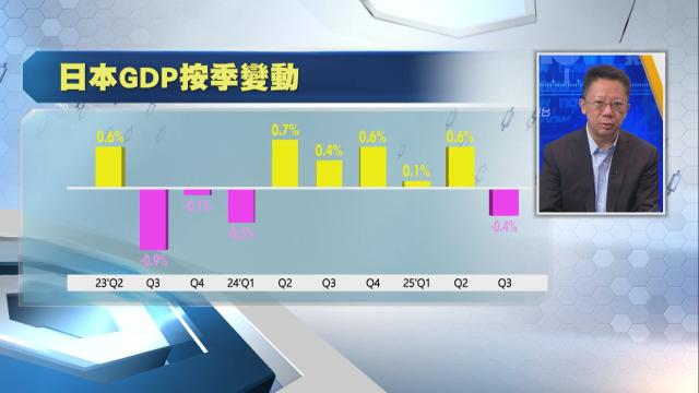 【Now財經台】日本昨日(17日)出咗第3季國內生產總值(GDP)數據,按季收縮0.4%,係2024年第1季以來再度收縮...
