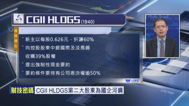 【Now財經台】CGII HLDGS(01940)部分股權易手觸發全購,股份今日(16日)復牌反覆向上,一度勁升近14%...(01940) 【分析】 梁杰文 3小時39分鐘前異動股丨比亞迪升逾7%返紅底股 據報獲10萬輛車大單