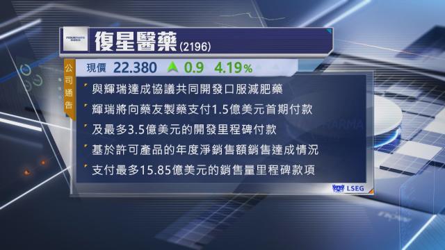 【簽合作協議】復星醫藥夥輝瑞開發口服減肥藥