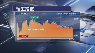 大市今日(15日)高開63點後,早段走勢反覆,一度轉跌約100點,其後最多倒升172點,高見19608點,收市跌9點,報19426點。大市全日成交縮減至逾1554億元。